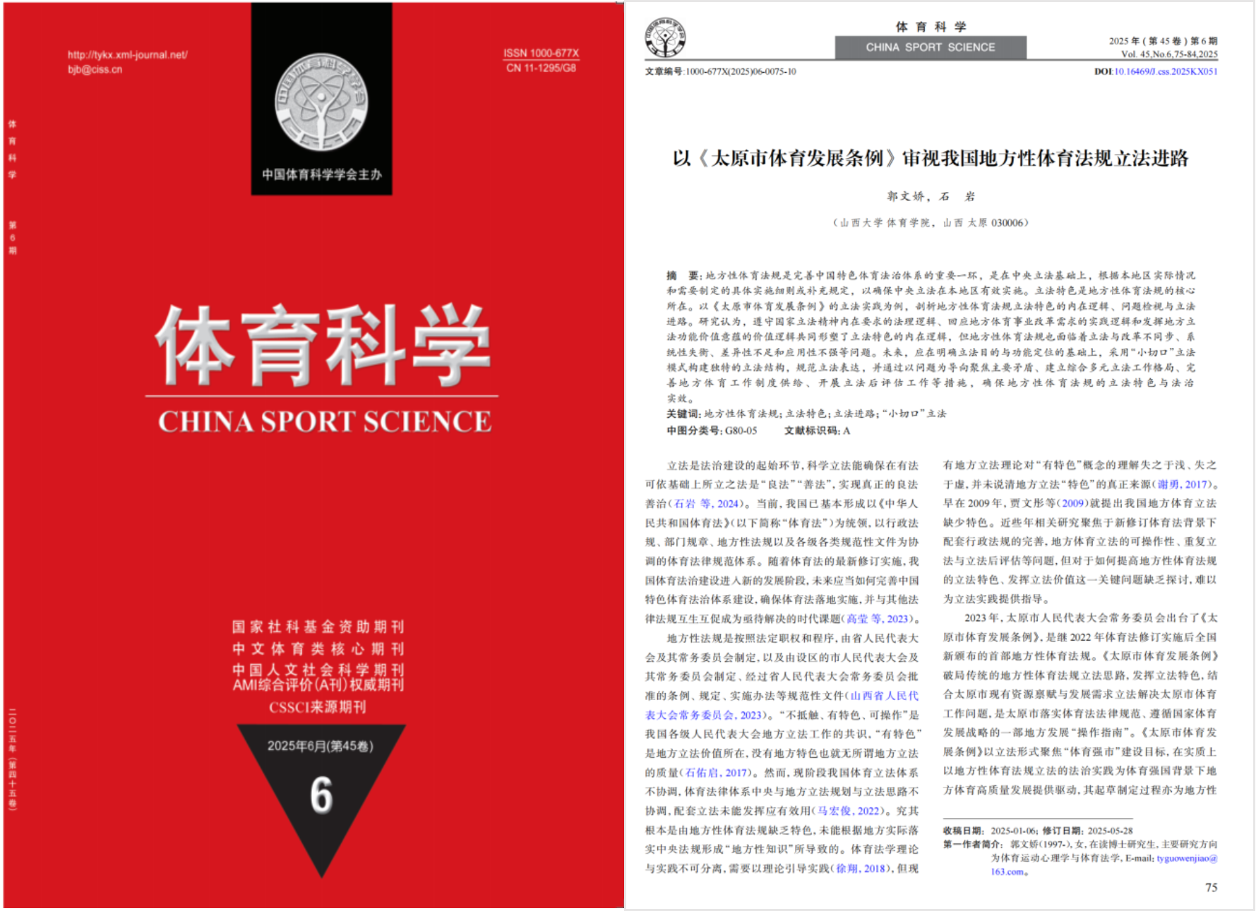 EMC易倍体育石岩教授研究团队在《体育科学》上发表论文